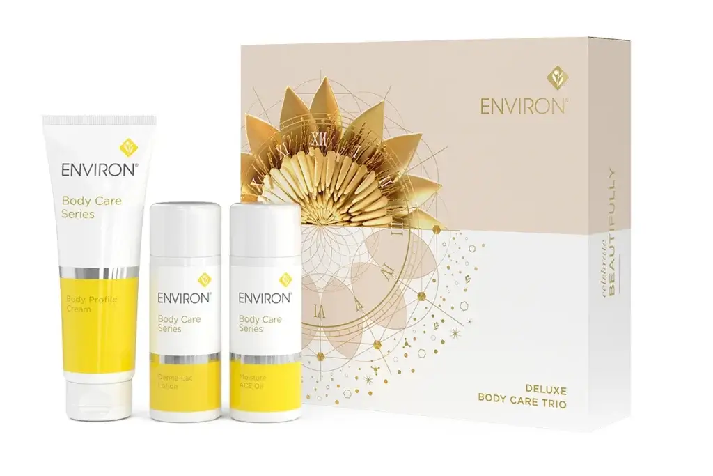 デラックスボディケアトリオ”(1万6940円)は、全身に美容成分を与えて肌を整えるボディケアセットです。