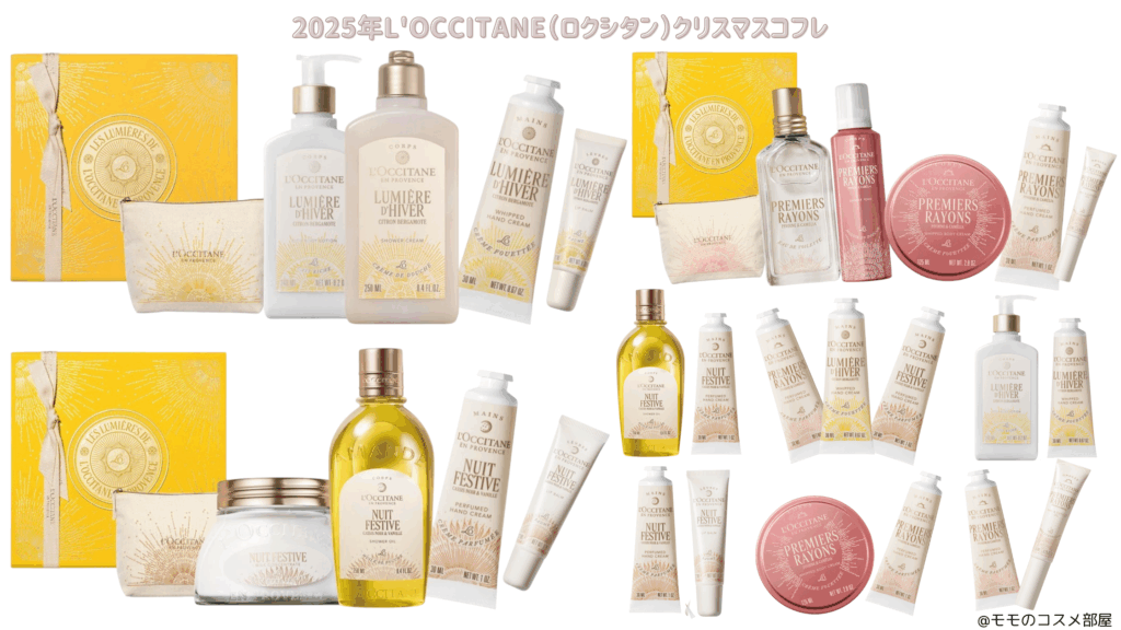 2025年10月29日(水)から発売開始のL’OCCITANE(ロクシタン)クリスマスコフレのラインナップです。