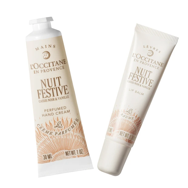 「ニュイ フェスティブ」のハンドクリームとリップバームのキット。