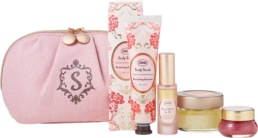 ゼラニウムの香りのヘッドスクラスのセットです。