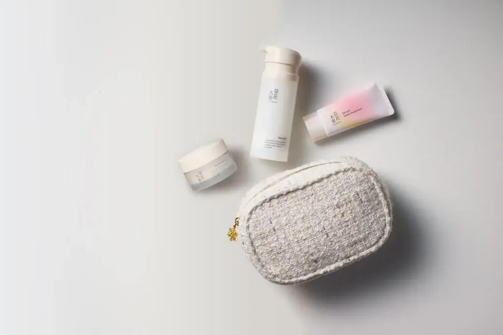 草花木果<毛穴・ハリケア>から、ビタミンC²と美容酵素³の力で毛穴の目立たないなめらかなつや肌に導く「マスクジェル C」と、グッと引き上げながらなじませてハリ感をつくり出す「エンリッチクリーム EX」の人気アイテム2品に、大人の手肌にうるおいとハリをもたらす「エンリッチ ハンドトリートメント」と「オリジナルポーチ」を加えた特別なコレクションです。